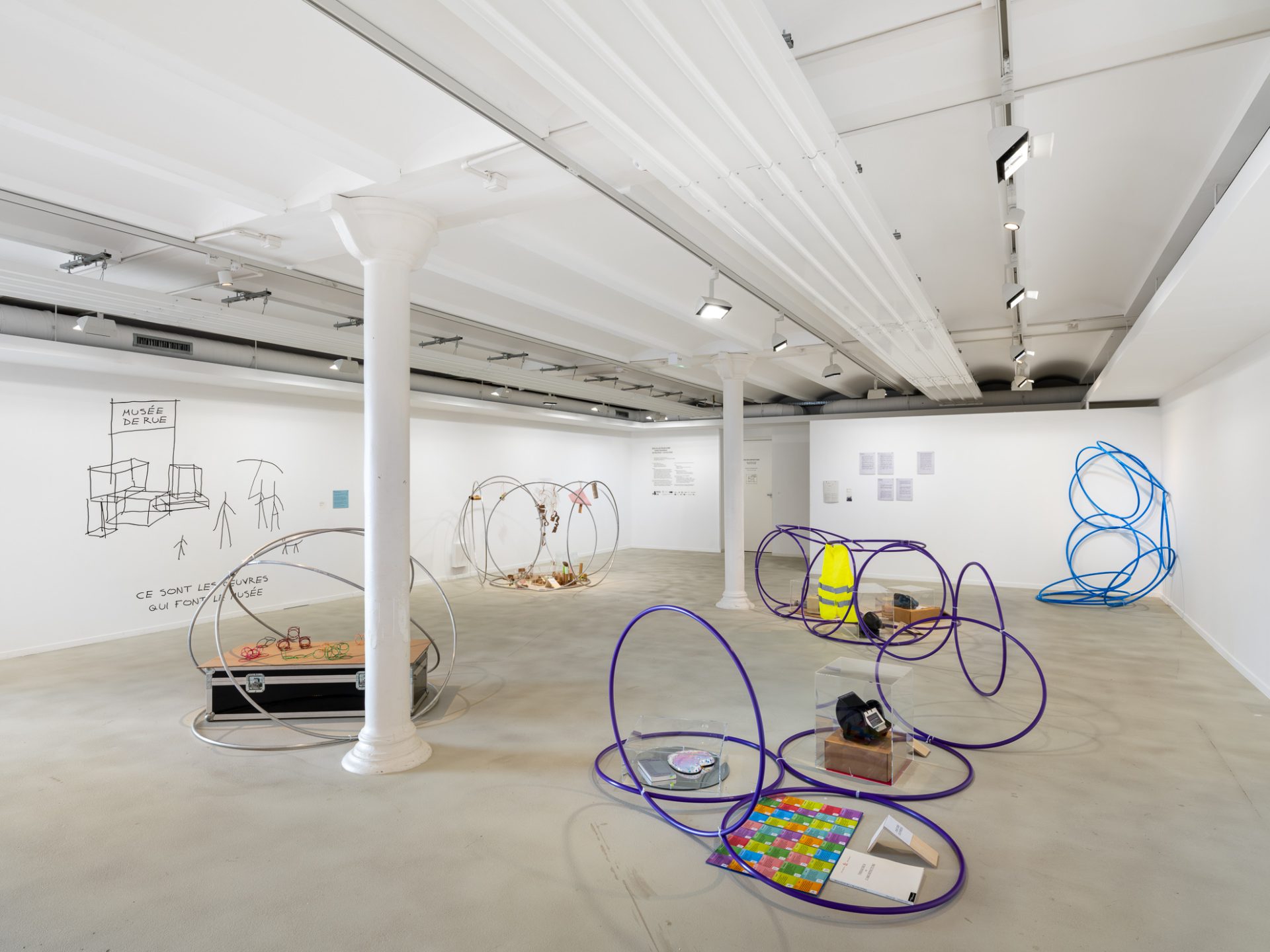 Le Musée sans bâtiment est un musée sans porte, sans mur, et sans toit. Il est conçu à l’aide de cerceaux qui servent de support à des créations déposées par les personnes participantes : œuvres graphiques, objets, collages, photographies… À l’occasion de l’exposition « Des villes pour vivre, Yona Friedman », le Frac Centre-Val de Loire réactive le Musée sans bâtiment, permettant aux publics de participer à cette œuvre.
