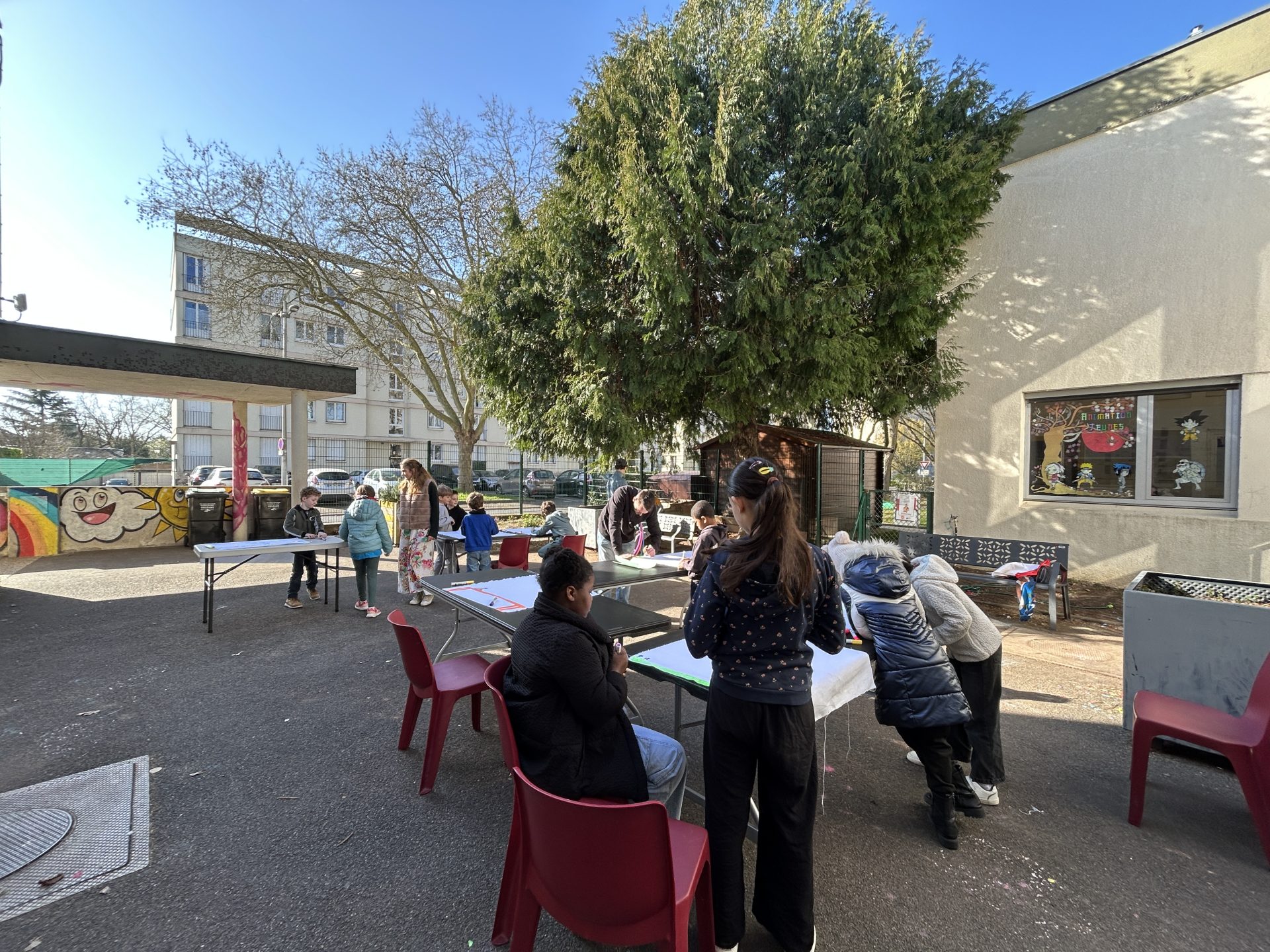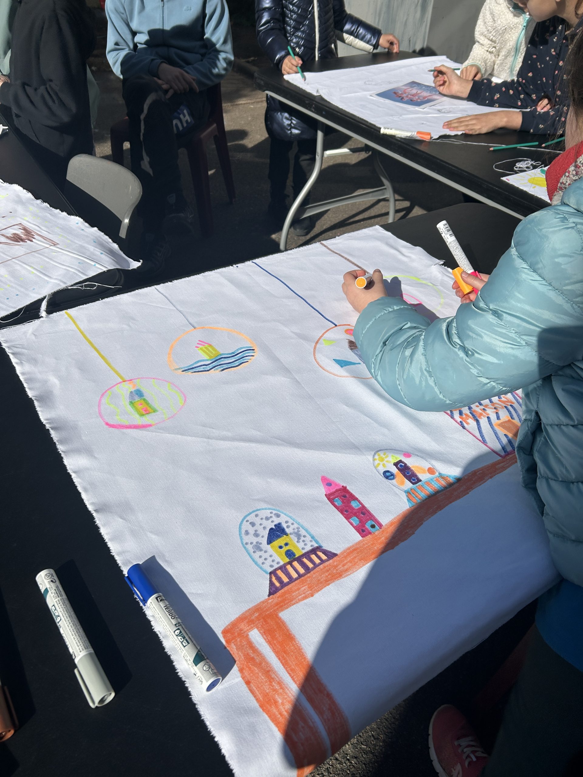 Tout au long du mois de mars, les centres ASELO Blossières et Murlins se transforment en véritables ateliers de création. Les jeunes, adultes et seniors y décorent les grandes toiles qui habilleront la structure en cerceaux colorés du musée.
