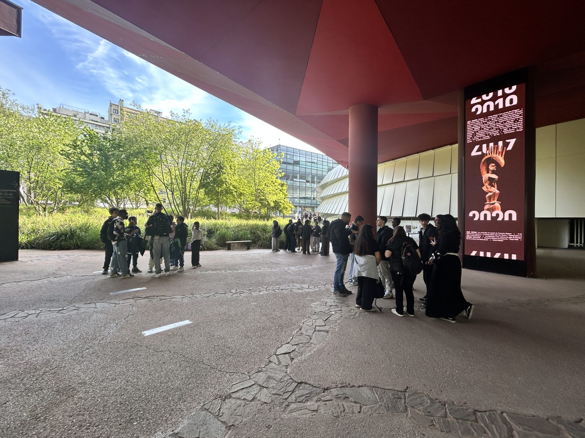 Accompagnés par les animateurs de l’ASELO Blossières et l’équipe du Frac, les jeunes des Blossières ont profité d’une journée marathon : île de la Cité, cathédrale Notre-Dame de Paris, pyramide du Louvre, pique-nique au jardin des Tuileries, pour se retrouver aux pieds de la Tour Eiffel pour une visite du Quai Branly. De la découverte du métro parisien aux amphis de Sciences Po, chaque étape a été une occasion d’élargir les horizons.